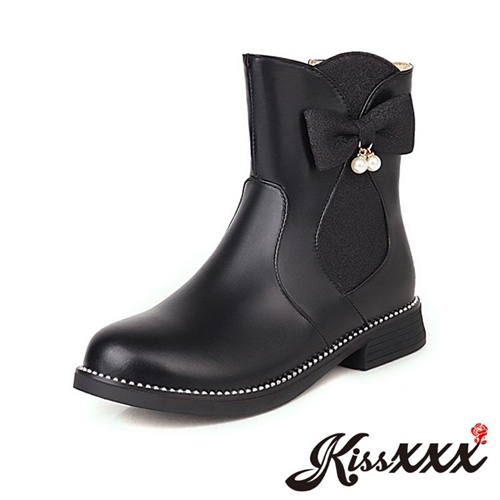 甜美公主風閃耀金蔥拼接蝴蝶結造型低跟短靴 黑 |