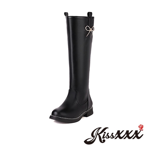 優雅法式蝴蝶結造型百搭低跟長靴 黑 |