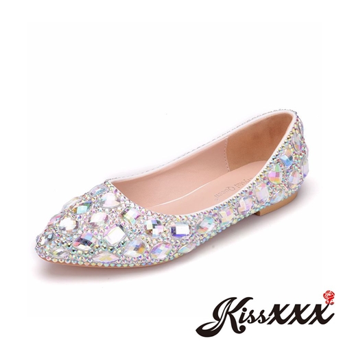 不規則寶石燙鑽尖頭華麗滿鑽低跟鞋 彩 |