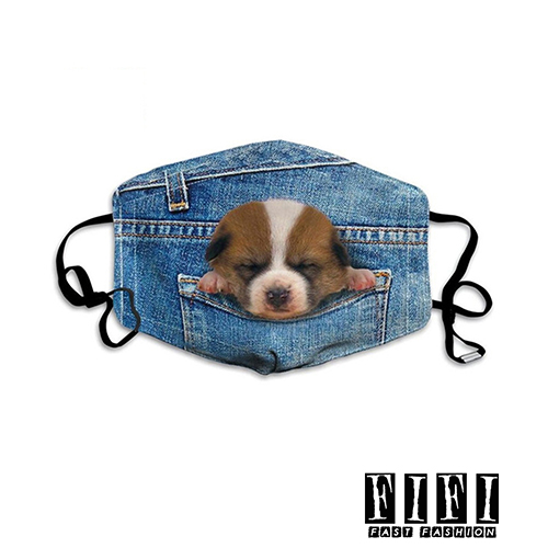 [快速出貨] 牛仔布印花貓狗內層口袋防塵口罩 6款任選*FIFI* |