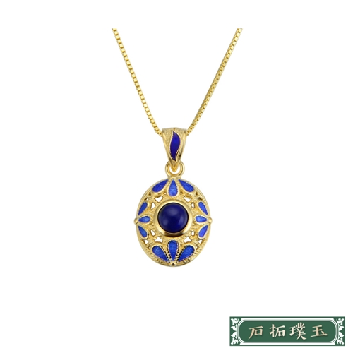 純銀925寶石縷空景泰藍幾何花朵橢圓吊墜 4款任選*石拓璞玉* |