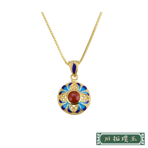 純銀925民族風寶石鑲嵌縷空景泰藍圓形吊墜 6款任選*石拓璞玉* |