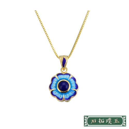 純銀925寶石鑲嵌景泰藍花朵復古造型吊墜 6款任選*石拓璞玉* |