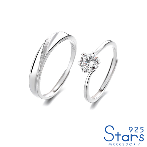 純銀925閃耀六爪單鑽情侶對戒 開口戒 2款任選*925 STARS* |
