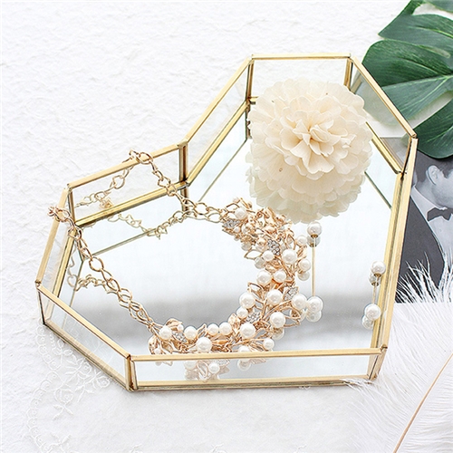 復古金色銅條幾何造型玻璃收納盤 4款任選 |