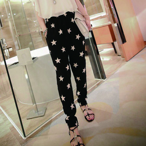 [快速出貨] 冰絲涼感休閒印花九分哈倫褲 I款 黑底白星*Kotone* |