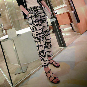 [快速出貨] 冰絲涼感休閒印花九分哈倫褲 J款 幾何圖騰*Kotone* |