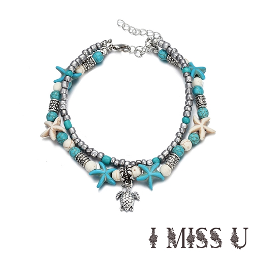 [快速出貨] 復古雙層海洋元素串珠腳鍊 6款任選*I MISS U* |