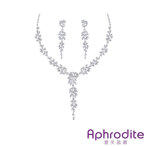 閃耀美鑽花葉幾何造型耳環項鍊2件套組*愛芙晶鑽* |