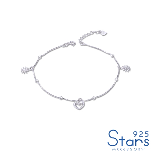 純銀925微鑲美鑽愛心花朵吊墜造型腳鍊*925 STARS* |