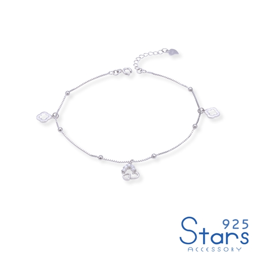 純銀925微鑲美鑽雙愛心四葉草吊墜小圓珠腳鍊*925 STARS* |