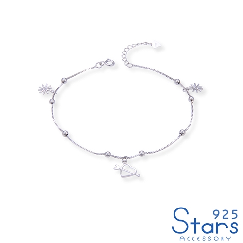 純銀925一箭穿心花朵吊墜小圓珠造型腳鍊*925 STARS* |