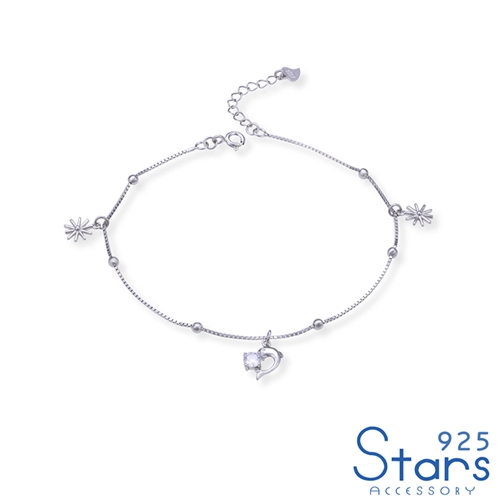 純銀925閃耀鋯石海豚花朵吊墜小圓珠造型腳鍊*925 STARS* |
