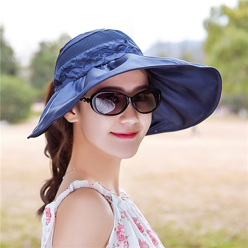 [快速出貨] 透氣網紗大帽檐可折疊繡花飾遮陽帽 7色任選*Sukie* |