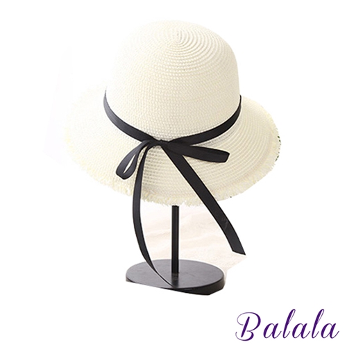 [快速出貨] 黑色蝴蝶結飾毛邊紙莎草編遮陽帽 2色任選*Balala* |