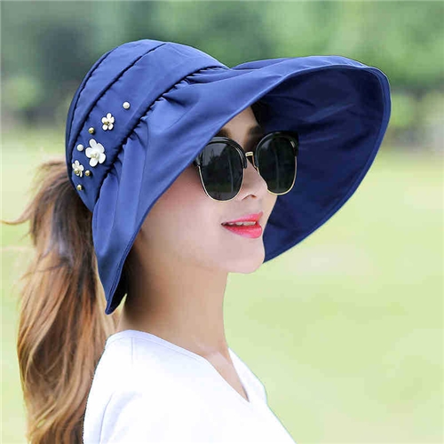 [快速出貨] 花朵珍珠可捲折透氣便攜防曬遮陽帽 9色任選*Sukie* |