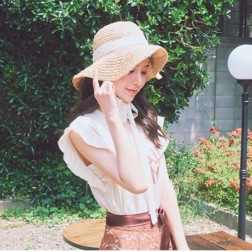 [快速出貨] 純手工拉菲草編蕾絲可折防曬草帽 2色任選*Balala* |