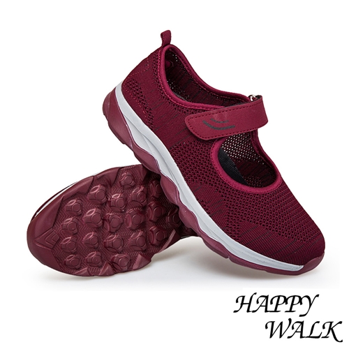 [快速出貨] 立體蜂巢飛織魔鬼粘休閒健步鞋 酒紅*HAPPY WALK* |