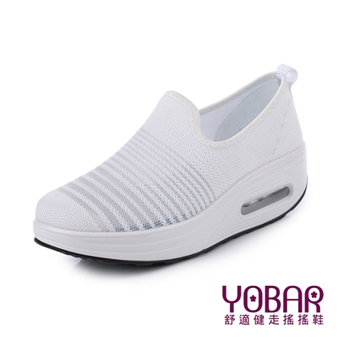 [快速出貨] 透氣彈力飛織懶人套腳真皮墊美腿搖搖鞋 白*YOBAR* |
