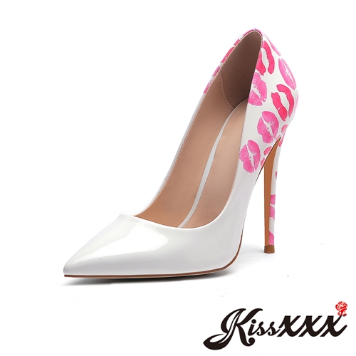 [訂製]尖頭淺口亮漆皮手繪唇印造型性感高跟鞋 白 |