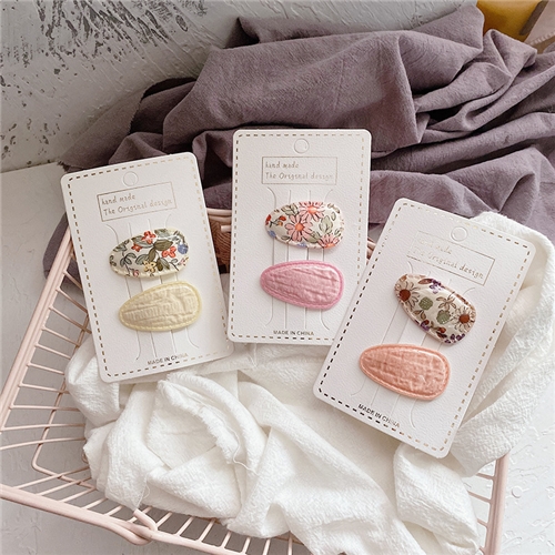 [快速出貨] 復古皮面碎花褶皺水滴髮夾2件套組 5色任選*INES* |