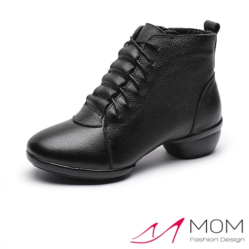 真皮軟底繫帶短筒休閒鞋 舞鞋 黑 |