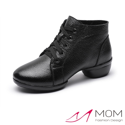真皮粗跟軟底舒適繫帶休閒鞋 舞鞋 黑 |