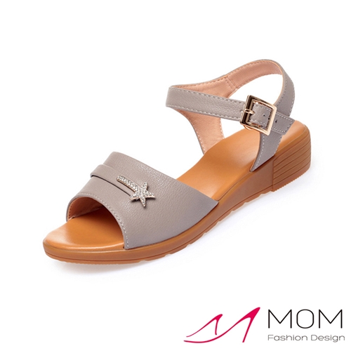 真皮美鑽流星裝飾舒適軟底坡跟涼鞋 灰 |
