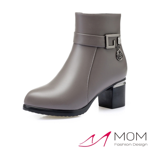 真皮優雅金屬鑽飾尖頭高跟短靴 灰 |