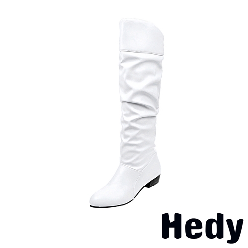 [快速出貨] 歐美純色時尚百搭粗跟長靴 白*HEDY* |