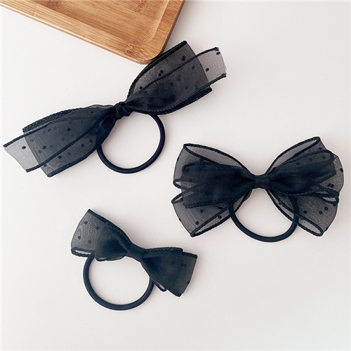 [快速出貨] 浪漫點點蕾絲紗花蝴蝶結髮圈 髮繩 3款任選*INES* |