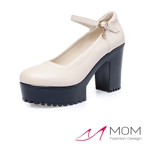 真皮淺口防水台一字繫帶粗跟鞋 C款 米色10CM高 |