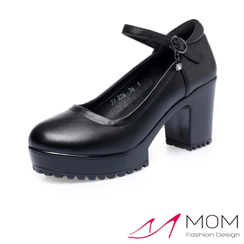 真皮淺口防水台一字繫帶粗跟鞋 D款 黑色8CM高 |