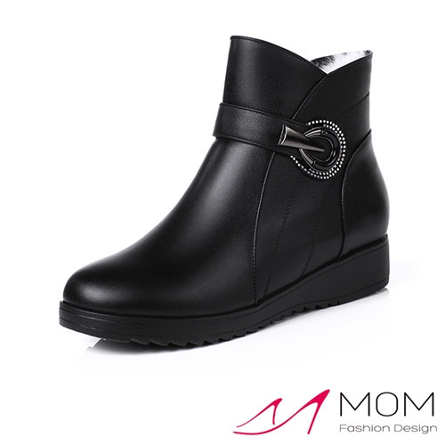 時尚燙鑽釦飾造型保暖機能厚底短靴 黑 |