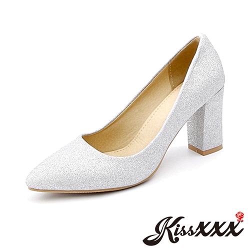 純色百搭尖頭粗跟時尚高跟鞋 銀 |