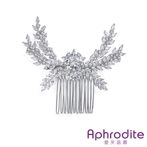 輕奢華麗鋯石麥穗花葉造型髮梳 髮飾*愛芙晶鑽* |