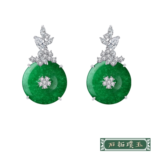 華麗美鑽鑲嵌鋯石典雅綠玉隨造型耳環*石拓璞玉* |