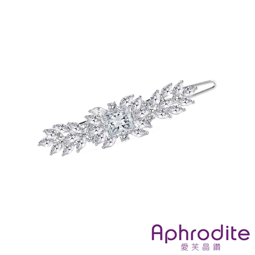 華麗閃耀鋯石花朵方塊寶石髮夾 邊夾 一字夾 4色任選*愛芙晶鑽* |