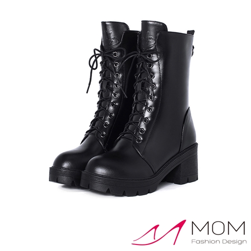 [快速出貨] 真皮保暖機能經典英倫風粗跟中筒馬丁靴 黑*MOM* |