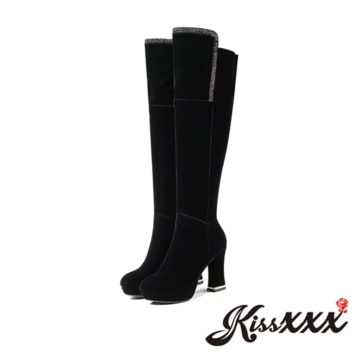 [快速出貨] 美腿效果小圓頭金邊美鑽邊飾及膝長靴 黑*KISSXXX* |