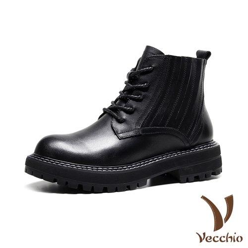 [快速出貨] 真皮頭層牛皮潮流復古繫帶切爾西短靴 黑*Vecchio* |