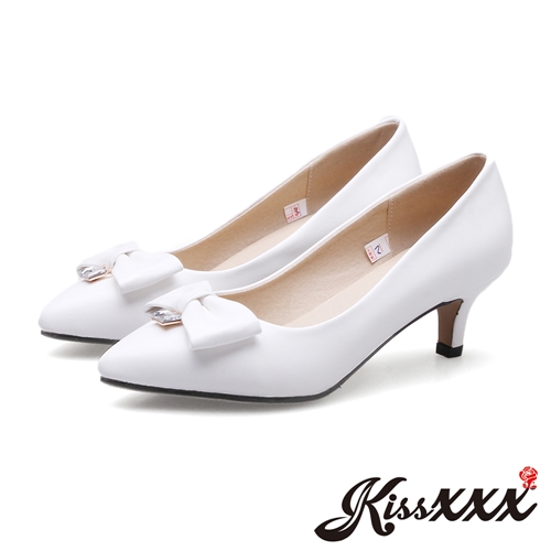 [快速出貨] 立體蝴蝶結方晶鑽小尖頭高跟鞋 白*KISSXXX* |