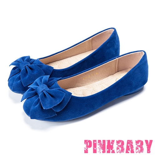 [快速出貨] 可愛圓頭立體大蝴蝶結舒適平底豆豆鞋 藍*PINKBABY* |