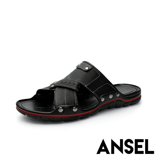 [快速出貨] 真皮頭層牛皮交叉造型時尚平底拖鞋 黑*ANSEL* |