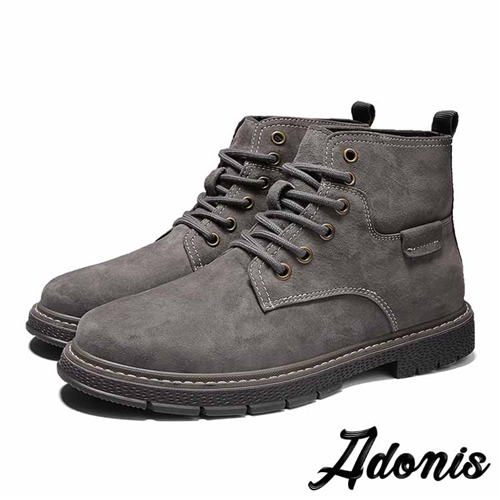 [快速出貨] 真皮翻絨皮革復古休閒時尚工裝短靴 灰*Adonis* |