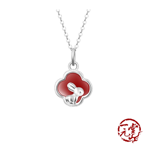 純銀925復古中國風吉祥月兔幸運四葉草項鍊 2色任選*一元堂* |