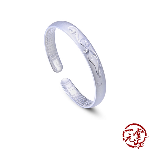 999千足銀系列愛心花葉雕刻經文開口手鐲 ±31g*一元堂* |