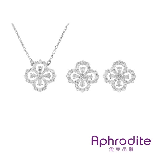 閃耀鋯石鑲嵌幸運四葉草縷空耳環項鍊2件套組 4色任選*愛芙晶鑽* |