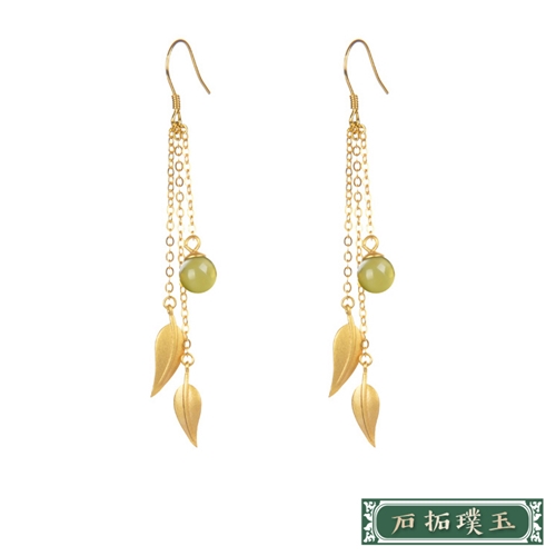 純銀925藍珀圓珠葉片流蘇造型耳環*石拓璞玉* |