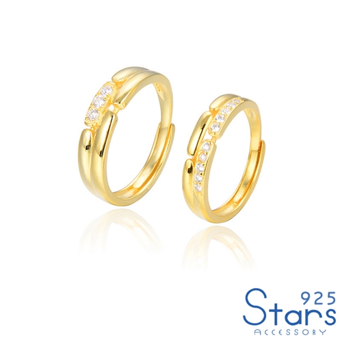 純銀925極簡美鑽金色情侶戒指 對戒 開口戒 2款任選*925 STARS* |